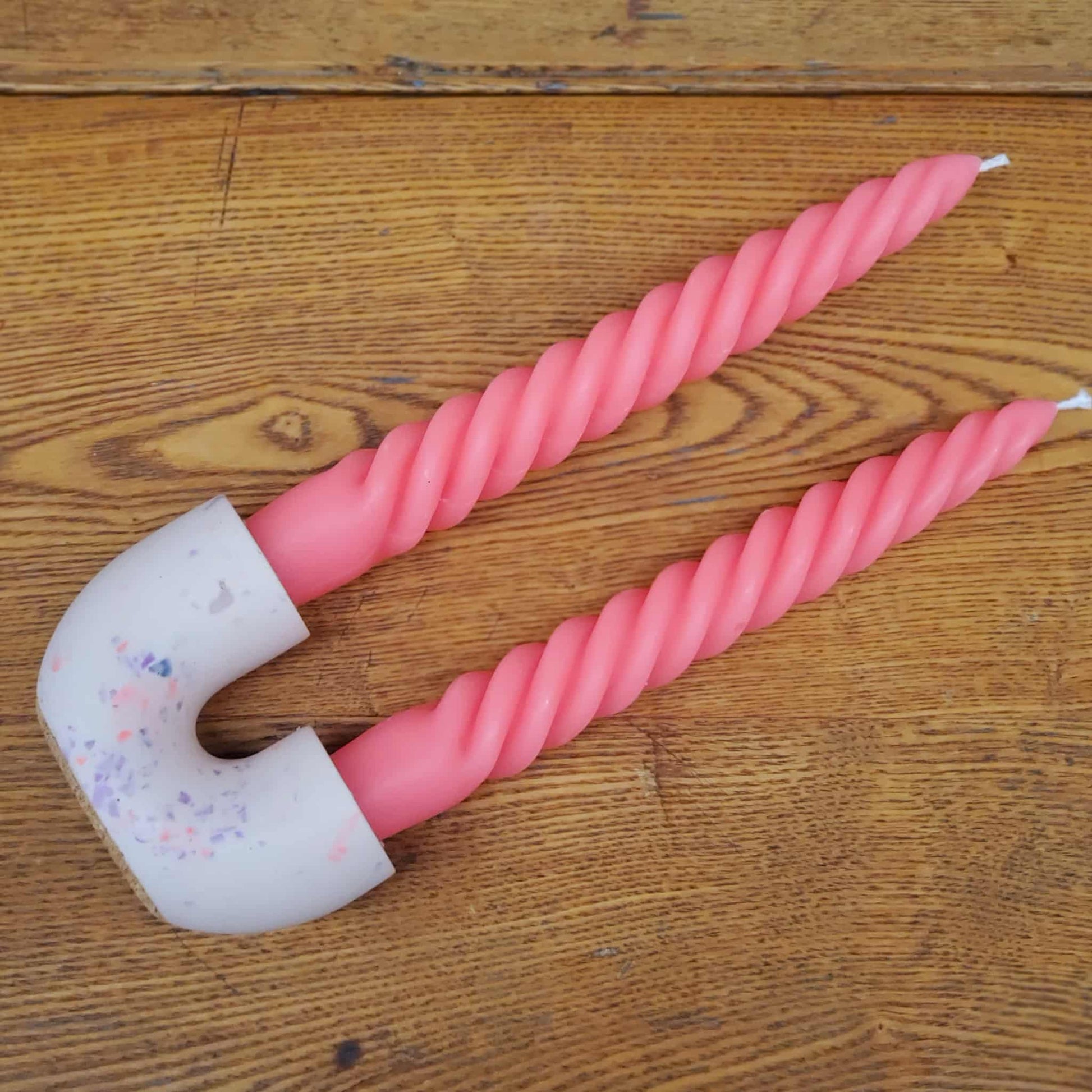 Ensemble de deux bougies coniques torsadées faites à la main et couleur mélangée à la main.
