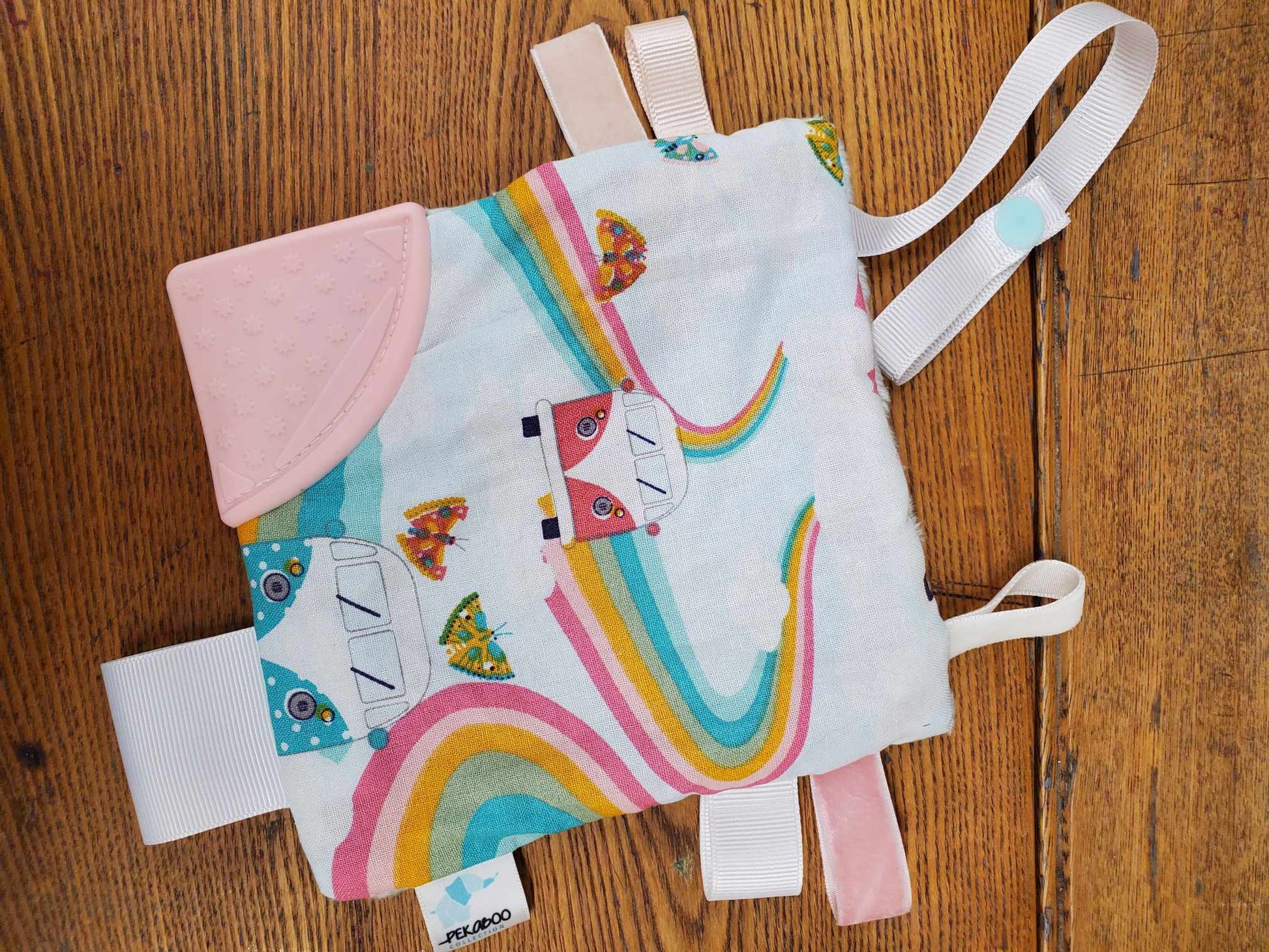 Textures variées : Pour soulager les gencives sensibles, le jouet est doté d’étiquettes de textures variées. Cela permet au bébé de frotter et de mâcher les zones qui procurent le plus de réconfort. Les textures peuvent être ondulées, bosselées, ou comporter des reliefs pour masser les gencives.