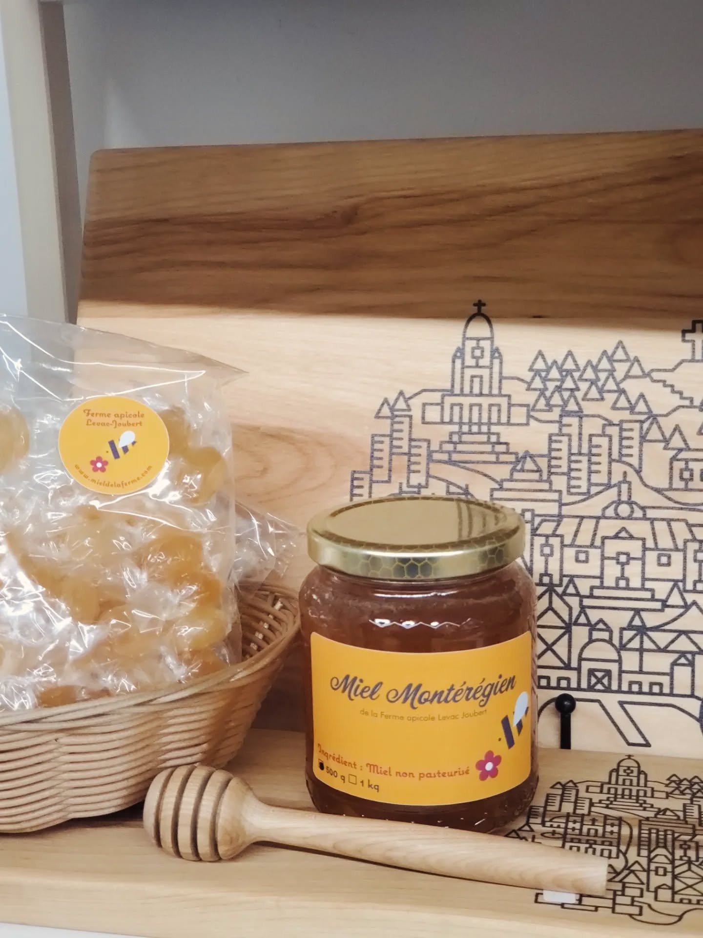 Miel ambré au goût plus prononcé contenant les meilleurs parfums de la Montérégie! Sur une tranche de pain ou en marinade, ce produit local est idéal!