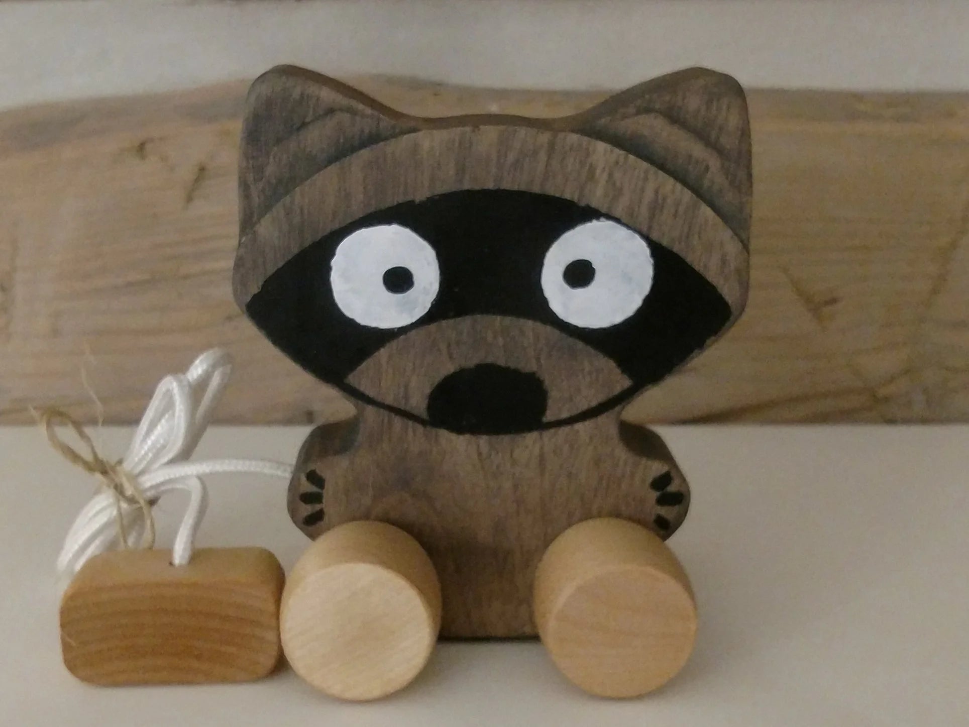 Les jouets à tirer en bois sont indémodables! Le raton laveur sur roulettes motive les enfants qui commencent à marcher et veulent le traîner partout. Durable, ce compagnon les suivra (littéralement!) tout au long de leur développement. C’est aussi une superbe décoration pour la chambre de bébé ou la salle de jeu, ce qui en fait une bonne idée de cadeau de naissance. En plus d’être mignon, le raton est sans aucun doute un modèle de créativité… et d’espièglerie!