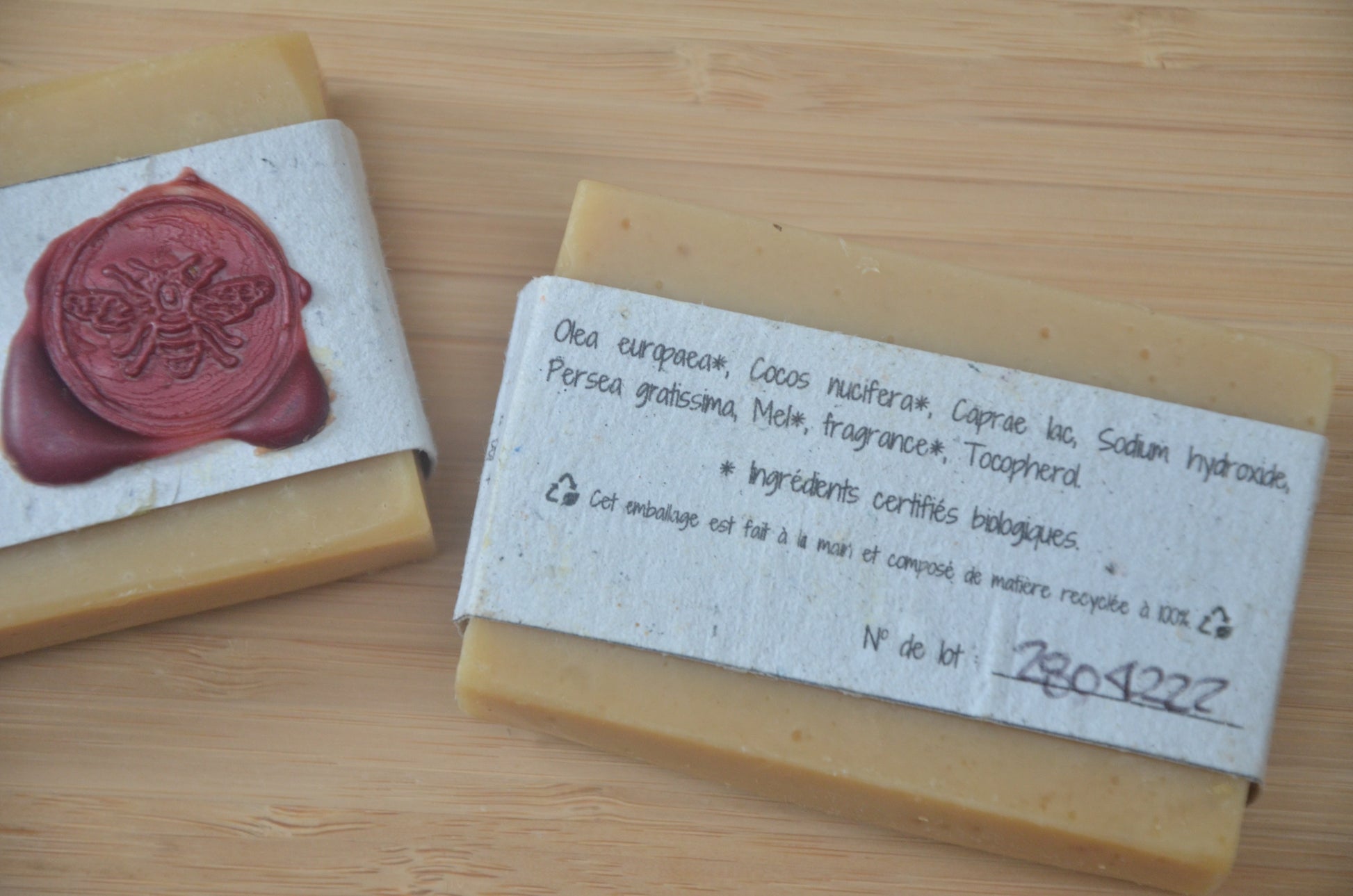 Ingrédients : Olea europaea*, Cocos nucifera*, Caprae lac, Sodium hydroxide, Persea gratissima, Mel*, fragrance*, Tocopherol.